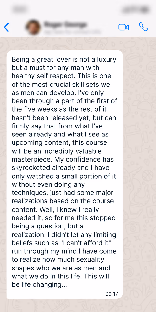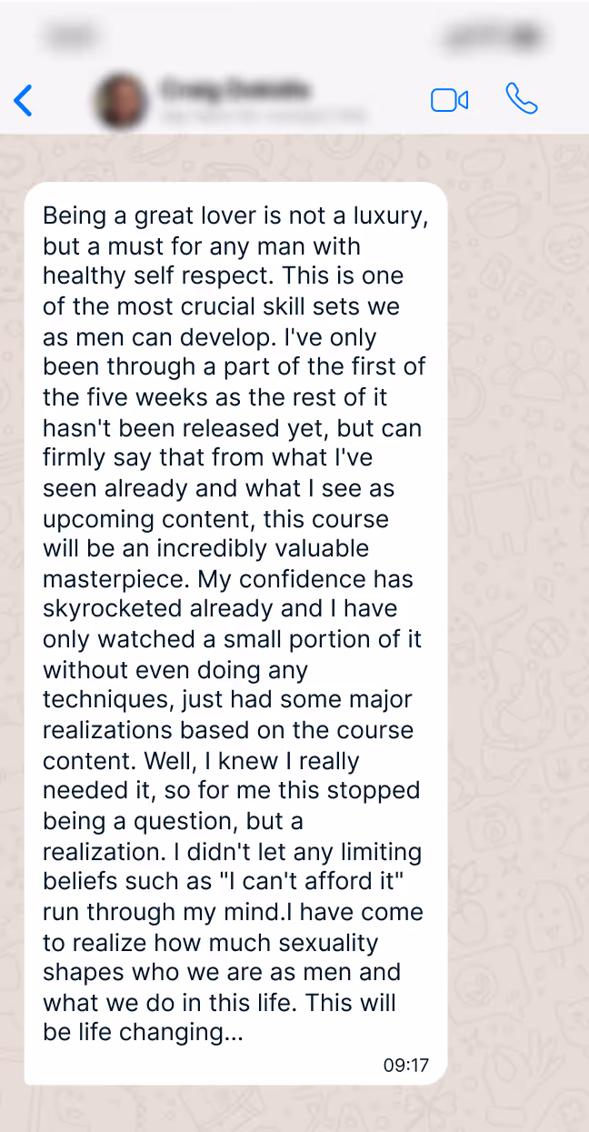 If you have some experience already, the Master Lover Academy is going to serve as the catalyst to supercharge your skills and reach the highest levels of sexual mastery.