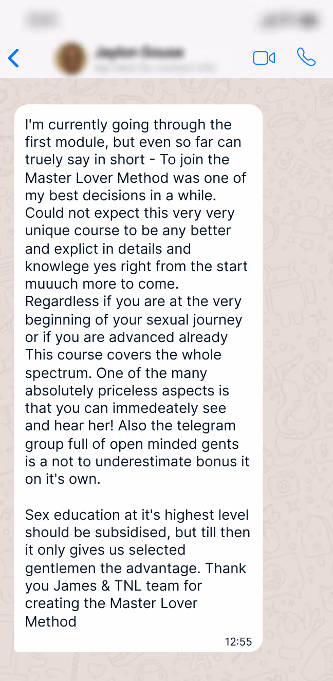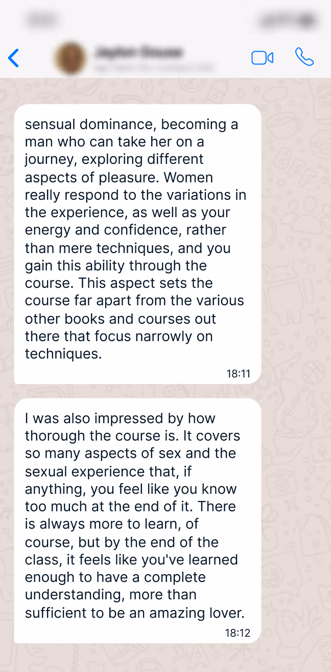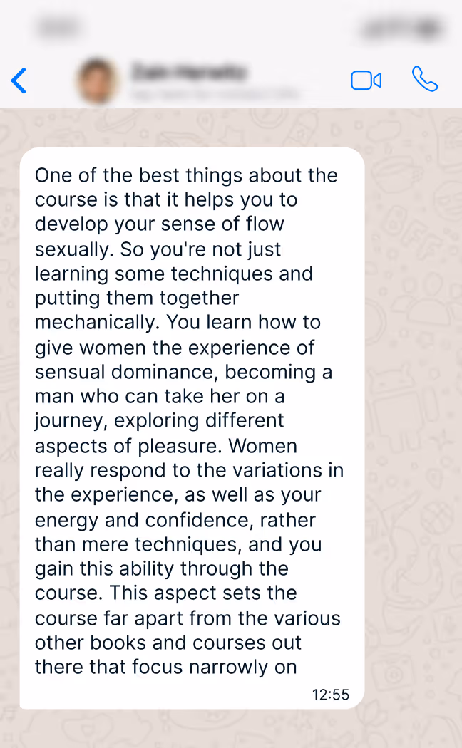 Originally taught in person to a select group of high paying students and later expanded into the world’s #1 trusted online sex course - The system has now been revamped with new exclusive modules as an 8-month progressive learning method.